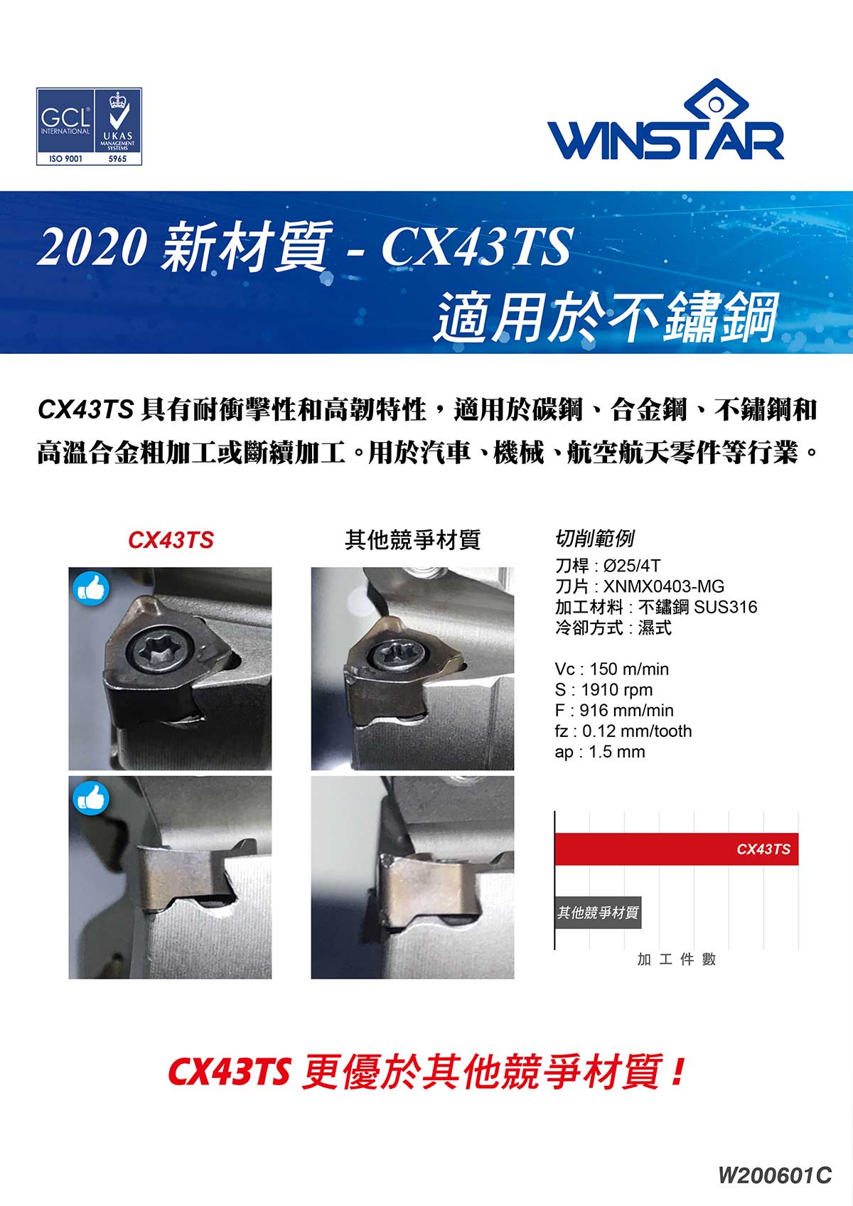2020新材質 – CX43TS, 適用於不鏽鋼